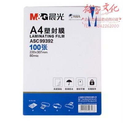 晨光 A4 塑封膜(80mic)100张 ASC99392SKU:yzwhyp954524