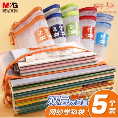 晨光(Mamp;G)文具双层A4文件袋 透明网格学科分类袋 学生试卷科目分类拉链袋文具袋 开学文具 5个装ADM929WESKU:yzwhyp954554