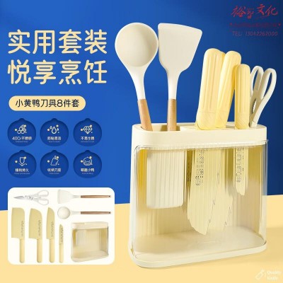 小黄鸭厨房刀具套装八件套菜刀砍骨刀水果刀剪刀锅铲汤勺厨具全套SKU:yzwhyp954637