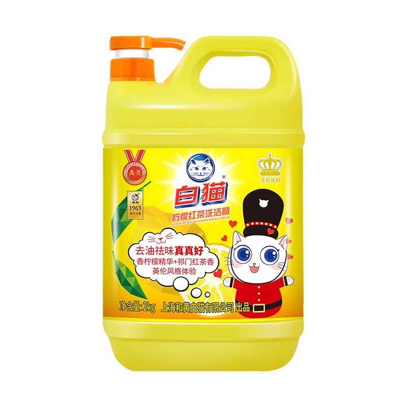 白猫白猫柠檬红茶洗洁精家用大瓶装厨房快速去油不伤手A类去油祛味 柠檬红茶洗洁精2kg*8SKU:yzwhyp954711