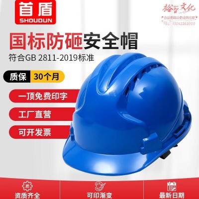 首盾安全头盔 新国标ABS工地男加厚透气安全帽建筑工程蓝色安全帽领导电力监理劳保帽子头盔 三筋透气款-多色SKU:yzwhyp954784