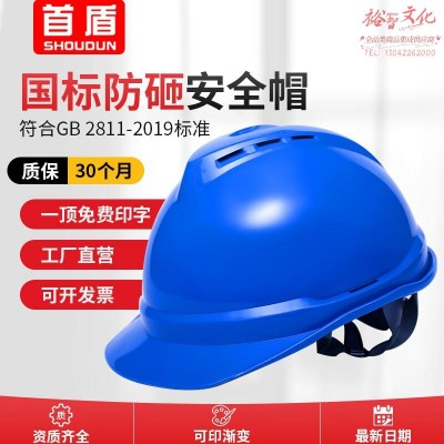 首盾安全头盔 新国标ABS工地男加厚透气安全帽建筑工程蓝色安全帽领导电力监理劳保帽子头盔 豪华v型透气款-多色SKU:yzwhyp954786