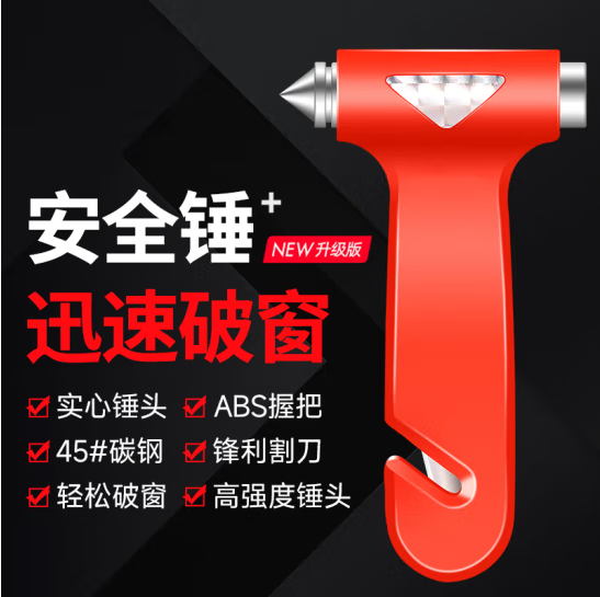 援邦 升级破窗锤-红 安全锤 车用逃生一秒破窗锤 消防锤 安全带割刀 多功能破窗锤 (SKU:yzwhyp954846