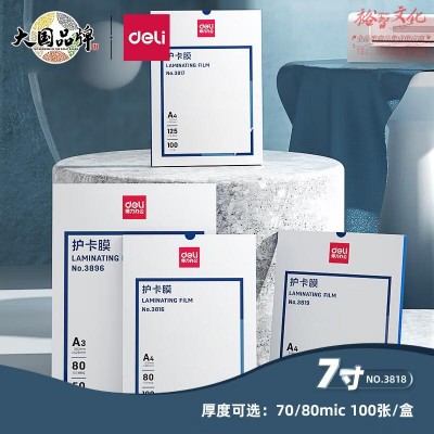 首页 > 办公用品 > 文具 > 得力/deli 3818 7寸优质专用塑封膜 135*188mm 100张/包 透明色(单位:包)SKU:yzwhyp954906