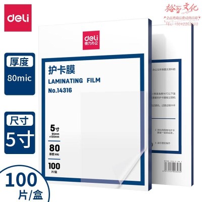 得力/deli 14316 5寸优质塑封膜135*95mm 80mic厚度 100张/包 透明色(单位:包)SKU:yzwhyp954908