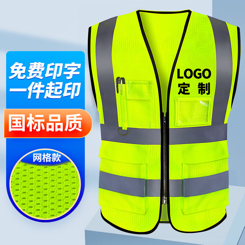 反光背心高亮多口袋施工工程反光衣环卫马甲安全交通警示服-网格款SKU:yzwhyp954936