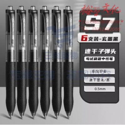 得力按动笔中性笔6支 考试刷题笔红笔碳素黑色笔按压式速干水笔蓝墨蓝护士 SKU:TK35274SKU:yzwhyp955063
