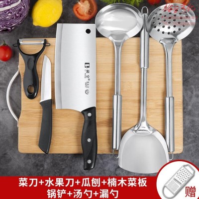 菜刀刀具套装菜板厨房用品厨具案板锅铲切菜刀全套砧板组合刀架收 【楠竹板】菜刀铲勺漏 7件套SKU:yzwhyp955137