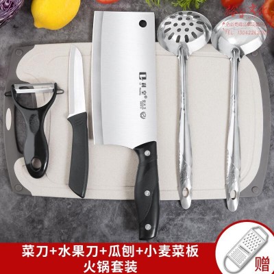 菜刀刀具套装菜板厨房用品厨具案板锅铲切菜刀全套砧板组合刀架收 【小麦板】菜刀火锅 6件套SKU:yzwhyp955139