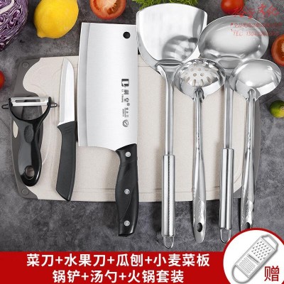 菜刀刀具套装菜板厨房用品厨具案板锅铲切菜刀全套砧板组合刀架收 【小麦板】菜刀铲勺 8件套SKU:yzwhyp955142