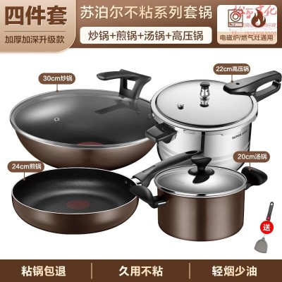 苏泊尔(SUPOR)锅具套装不粘锅家用不粘菜炒锅平底锅厨房全套装锅电磁炉燃气通用 【炒 煎 汤 高压锅】 4件套SKU:yzwhyp955183