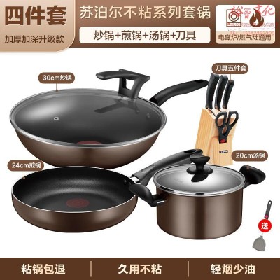 苏泊尔(SUPOR)锅具套装不粘锅家用不粘菜炒锅平底锅厨房全套装锅电磁炉燃气通用 【炒 煎 汤 刀】 4件套SKU:yzwhyp955186