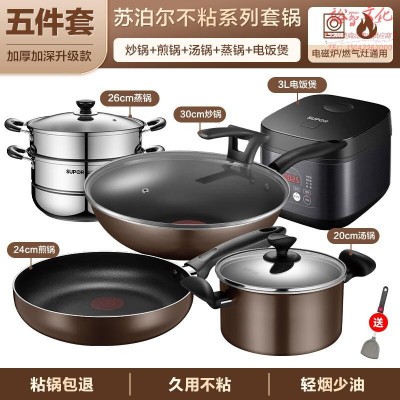 苏泊尔(SUPOR)锅具套装不粘锅家用不粘菜炒锅平底锅厨房全套装锅电磁炉燃气通用 【炒 煎 汤 蒸 电饭煲】 5件套SKU:yzwhyp955203