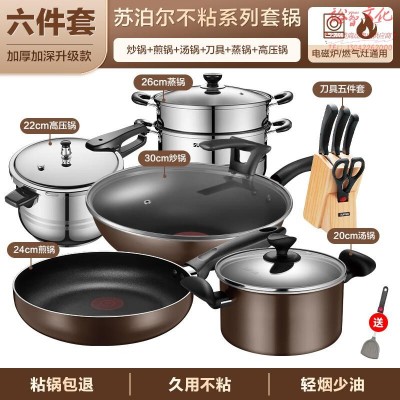 苏泊尔(SUPOR)锅具套装不粘锅家用不粘菜炒锅平底锅厨房全套装锅电磁炉燃气通用 【炒 煎 汤 蒸 高 刀】 6件套SKU:yzwhyp955205