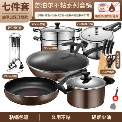 苏泊尔(SUPOR)锅具套装不粘锅家用不粘菜炒锅平底锅厨房全套装锅电磁炉燃气通用 【炒 煎 汤 铲 刀 蒸 高】 7件套SKU:yzwhyp955206