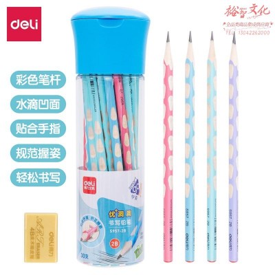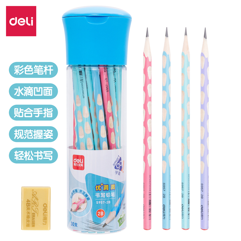 得力S957-2B_淡彩30支桶装2B优 洞洞书写铅笔(混)(30支/桶)SKU:yzwhyp955379