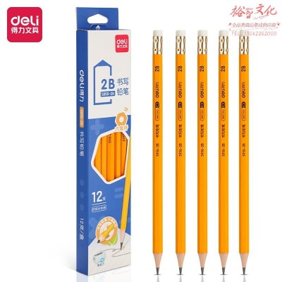 得力S956-2B_黄杆办公皮头2B铅笔(黄)(12支/盒)SKU:yzwhyp955413