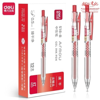 得力 S18-B 简约臻干净扩容速干按动中性笔0.5mm尖锥头(红)(支) SKU:SKU:yzwhyp955537