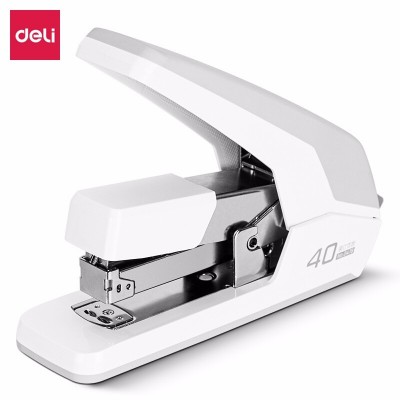 得力(deli)40页省力订书机/订书器 防卡钉功能 弹出式钉道 办公用品 白色0478