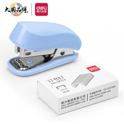 得力(deli)12#迷你便携订书机套装(订书机+订书针) 试卷装订 学习用品 蓝色0255