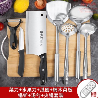 菜刀刀具套装菜板厨房用品厨具案板锅铲切菜刀全套砧板组合刀架收 【楠竹板】菜刀铲勺 8件套SKU:yzwhyp955721