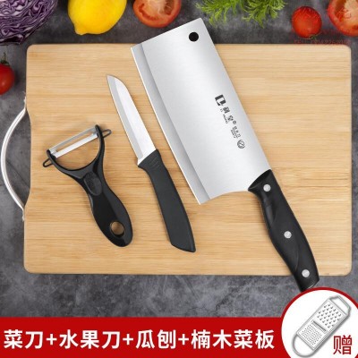 菜刀刀具套装菜板厨房用品厨具案板锅铲切菜刀全套砧板组合刀架收 【楠竹板】菜刀菜板 4件套SKU:yzwhyp955723