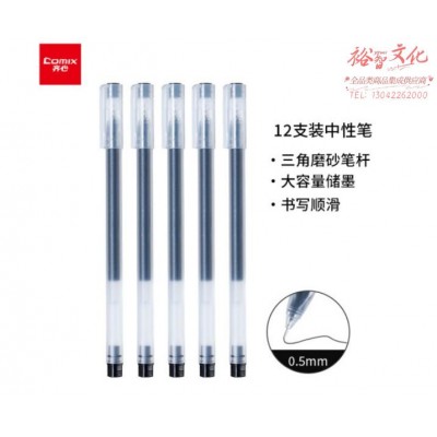 齐心(Comix)巨能写大容量中性笔签字笔水笔考试办公会议笔0.5mm 12支装 GP353 黑色SKU:yzwhyp955846