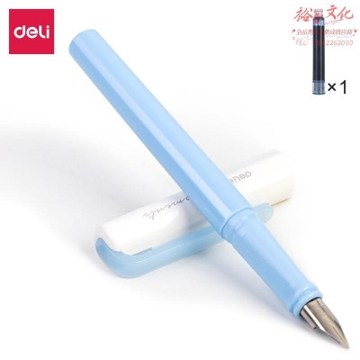 得力A932钢笔(可擦纯蓝/笔壳蓝色)(1支笔 1墨囊/盒)(盒)SKU:yzwhyp955905
