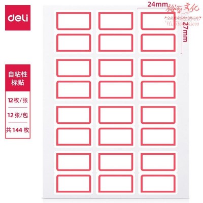 得力/deli 7193 不干胶标签贴纸 144枚24*27mm 红框 单位:包SKU:yzwhyp955927