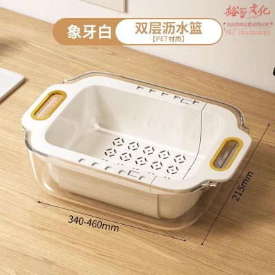 加度双层可伸缩沥水篮厨房菜篮子洗菜盆沥水家用客厅水果盘水槽滤水篮SKU:yzwhyp955995