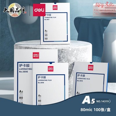得力/deli 14319 A5优质塑封膜220*160mm 80mic厚度 100张/包 透明色(单位:包)SKU:yzwhyp956006