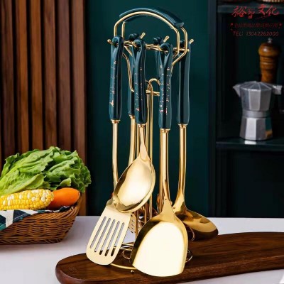 锋上 不锈钢锅铲套装铲勺7件套轻奢陶瓷手柄带汤勺煎铲漏勺面捞 金纹陶瓷手柄【祖母绿】SKU:yzwhyp956027
