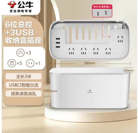 公牛(BULL)带USB新国标收纳盒延长线插座/6位全长3米 GN-F2151USKU:yzwhyp956123
