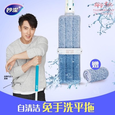 妙洁 巧净免手洗平板拖把 木地板瓷砖干湿两用 共2块原装拖布SKU:yzwhyp956173