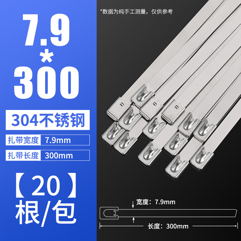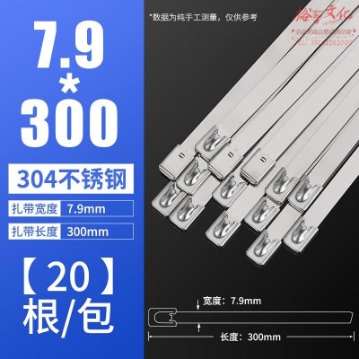 304不锈钢扎带自锁收紧室外耐高温船用捆绑金属钢条扎丝4.6/7.9MM 7.9*300MM (20根/包)SKU:yzwhyp956231