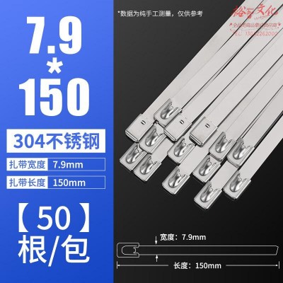 304不锈钢扎带自锁收紧室外耐高温船用捆绑金属钢条扎丝4.6/7.9MM 7.9*150MM (50根/包)SKU:yzwhyp956241