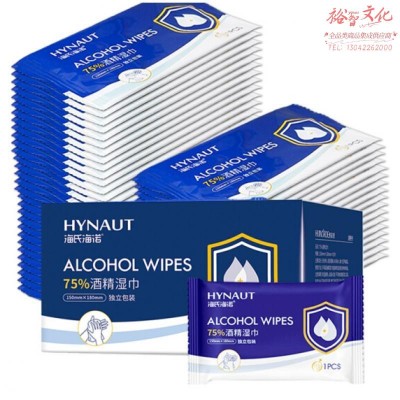 海氏海诺 75%消毒湿巾 一次性消毒棉片 单片独立包装 18*15cm*50片 便携小包装免洗洗手消毒液湿巾 SKU:yzwhyp956345