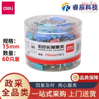 得力8556ES彩色长尾夹燕尾夹凤尾夹15mm 6#票据夹 凤燕尾夹 铁夹子 桶装60只SKU:yzwhyp956426