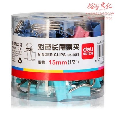 1100007331EA 得力 8556 筒装彩色长尾票夹 15MM 彩色 60筒/箱SKU:yzwhyp956437