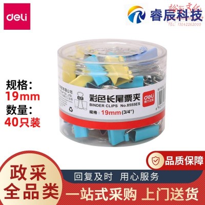 得力8555ES彩色长尾夹凤尾夹40只19mm小号金属票夹燕尾夹票据夹子办公用SKU:yzwhyp956476