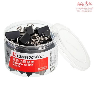 齐心/COMIX B3628 长尾票夹 25mm 48只/筒 黑色 单位:筒SKU:yzwhyp956489