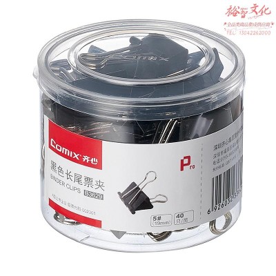 齐心/COMIX B3629 长尾票夹 19mm 40只/筒 黑色 单位:筒SKU:yzwhyp956491