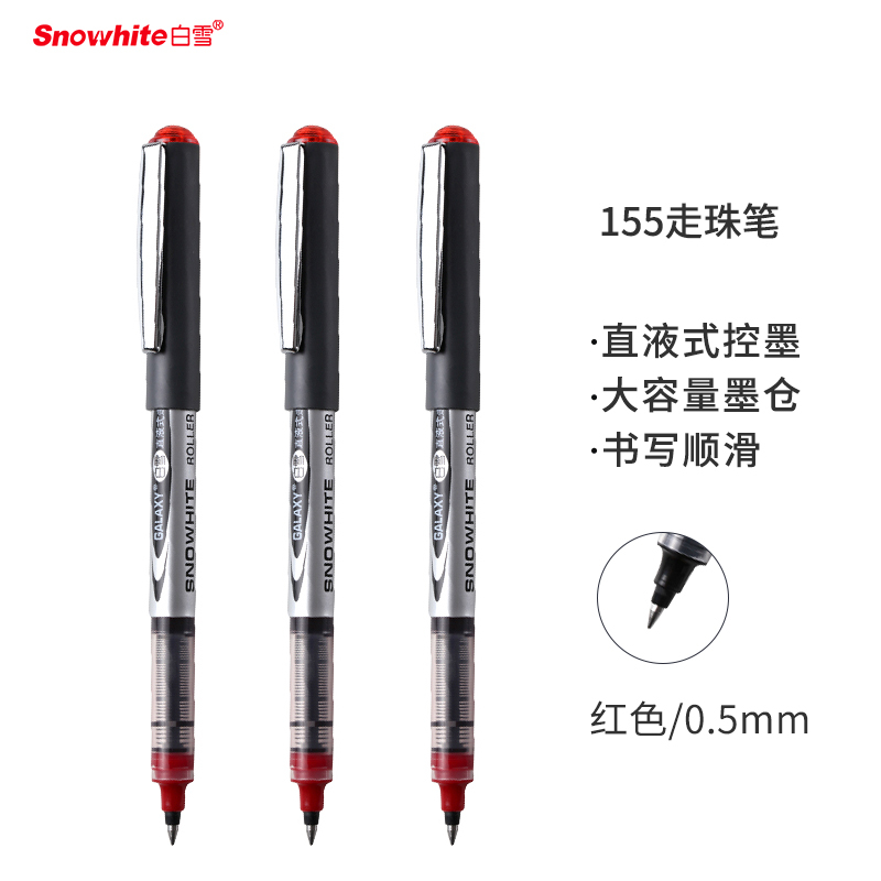 白雪 PVR-155 办公事务专用走珠笔子弹头0.5mm 红 12支/盒(单位:盒)SKU:yzwhyp956524