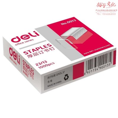 得力/deli 0013 厚层订书钉 23/13 1000枚/盒 镍色 单位:盒SKU:yzwhyp956625