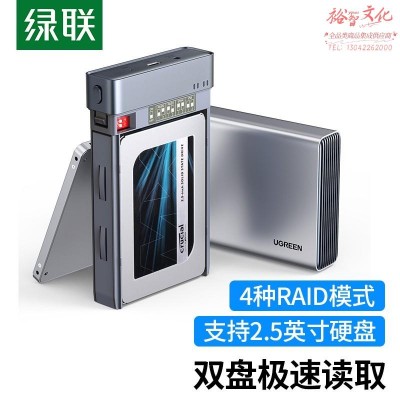 绿联移动硬盘阵列盒2.5英寸硬盘柜 双盘位SSD固态硬盘raid磁盘阵列盒 sata串口type-c电脑外置盒子80857SKU:yzwhyp956749