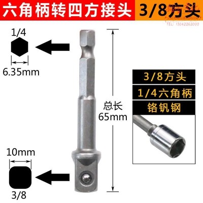 首页 > 建筑建材 > 五金附件 > 电动扳手套筒转换接头万能高精度钻夹头连接杆批头转换头 六角柄转四方接头(3/8方头)SKU:yzwhyp956949