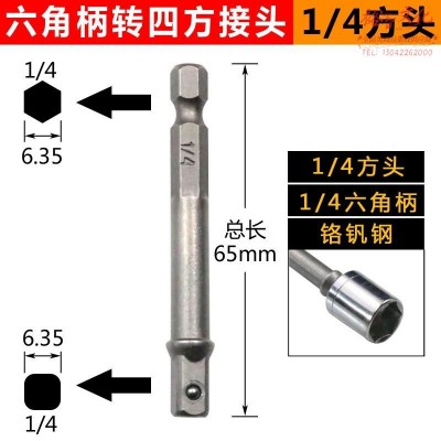 电动扳手套筒转换接头万能高精度钻夹头连接杆批头转换头 六角柄转四方接头(1/4方头)SKU:yzwhyp956950