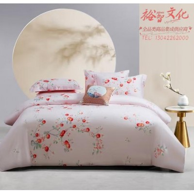 梦洁家纺tg纯棉印花四件套床单被套被罩床上用品双人床保暖家用全棉套件 平安如意 纯棉四件套1.5m(200*230cm)SKU:yzwhyp956965