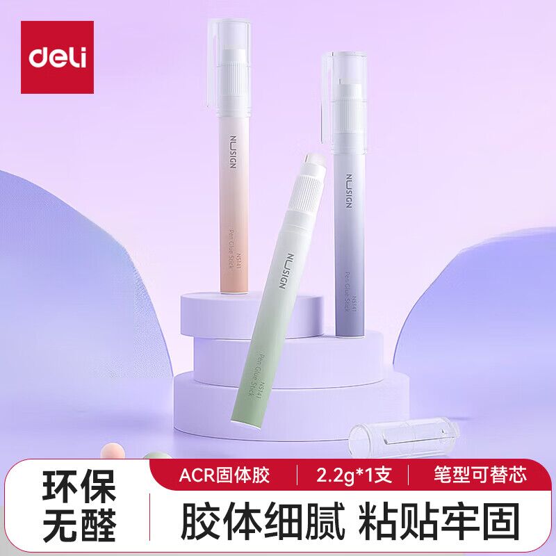 得力 纽赛笔型固体胶水 可换芯胶棒 学生创意手工diy 办公财务 便携单支装清露粉 NS141 SKU:yzwhyp957026