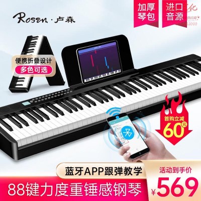 卢森(Rosen)P26电子琴88键成人便携式折叠电钢键盘儿童初学者智能手卷音乐键盘乐器 经典黑【全套配件 APP智能跟弹】SKU:yzwhyp957105